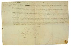 Commission à Mr Alexandre ROUGIER Notre Procureur en la Sénéchaussée et Siège Présidial de la Ville et gouvernement de la ROCHELLE, pour connaître en première instance les procès et différents concernant le Comté de RASSE cy devant le Fief de ST LOUIS sis à LA ROCHELLE. -