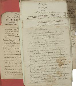 (Introduction à la connaissance des médailles anciennes qui font aujourd’hui l’objet de l’étude et la recherche des curieux. Suite des monuments antiques ; l’ancien port d’Oshé représenté sur les médailles. Recherches d’inscriptions.