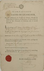 (SAINT DOMINGUE) – P.S. « Jean-Baptiste DE TASTES DE LILANCOUR, brigadier d’Infanterie des Troupes des Colonies, Chevalier de l’Ordre Royal et Militaire de Saint-Louis, & Commandant en Chef des Iles Françaises de l’Amérique sous le Vent &...