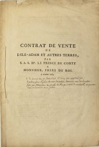 (VAL D’OISE – OISE. 1783) – « Contrat de vente de L’ISLE-ADAM et autres Terres, par S.A.S. Mgr le Prince de CONTY à MONSIEUR (Stanislas-Xavier.) Frère du Roi (Louis XVI) le 7 Octobre 1783. » Imprimé 19 pages in-folio – (note manus. de...