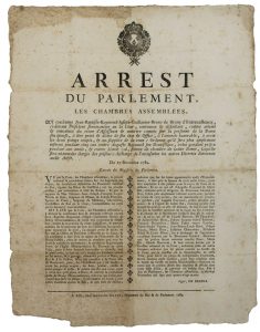PROVENCE. SUPPLICE DE LA ROUE. 1784 – du 17 Nov. 1784 – « Arrest du Parlement, les Chambres assemblées, qui condamne De BRUNY D’ENTRECASTEAUX, ci-devant Président Survivancier en la Cour, contumax et défaillant, comme atteint et convaincu...
