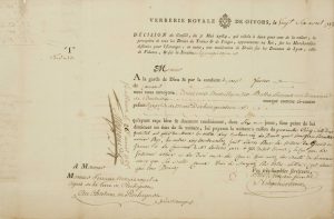 « Décision du Conseil, du 7 Mai 1784, qui réduit à 2% de la valeur, la perception de tous les Droits de Traites & de Péages, appartenants au Roi, sur les Marchandises destinées pour l’Étranger ; en outre, une modération de Droits sur les Douanes de Lyon, celle de Valence, et sur les Foraines et les péages royaux » -