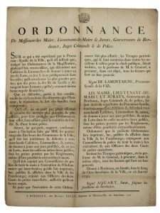 BORDEAUX. 1790 – JEU DE LOTO – « Ordonnance de Messieurs les Maire, Lieutenant-maire & Jurats, Gouverneurs de BORDEAUX, Juges Criminels de Police. » Donné à BORDEAUX (33) le 16 Janvier 1790 –