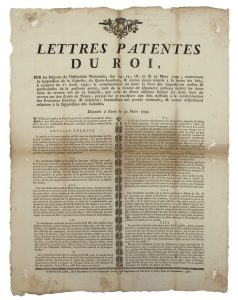 Donnée à Paris le 30 mars 1790 – Impr. à MONTPELLIER (34), chez Jean-François PICOT, Seul Imprimeur du Roi & de la Ville, Place de l’Intendance. 1790 –