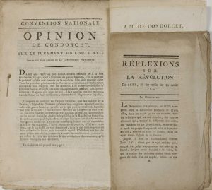 1°) « OPINION de CONDORCET SUR JUGEMENT DE LOUIS XVI, imprimée par ordre de la Convention Nationale.
