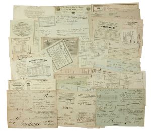 •Roulage Maronnier et Cie. + « DARLU rue des Blancs-Manteaux, N°27 à Paris 1808 « + •« À LA VILLE DE BORDEAUX. Bureau de roulage An 7 +