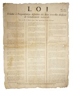 GENDARMERIE NATIONALE. PARIS 1792 - « LOI relative à l’organisation définitive des deux nouvelles divisions de Gendarmerie Nationale. Des 12 & 16 Août 1792 – N° 2165 – à PARIS, de l’Imprimerie Nationale Exécutive du LOUVRE, 1792 –