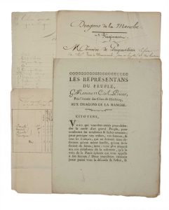 •Adresse imprimée « Les Représentants du Peuple G. ROMME et C.A. PRIEUR, près l’Armée des Côtes de CHERBOURG, aux DRAGONS DE LA MANCHE. » -