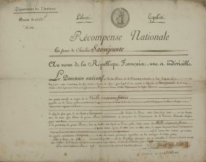 PYRÉNÉES ATLANTIQUES – Grand diplôme de RÉCOMPENSE NATIONALE signée du Ministre de l’Intérieur FRANÇOIS DE NEUFCHATEAU - Paris 27 Brumaire an 7 (1798) –