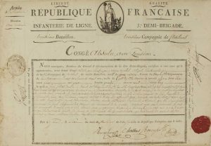 Congé absolu avec pension fait à Gênes (Italie) le 6 Fructidor An 7 (23 Août 1799) –