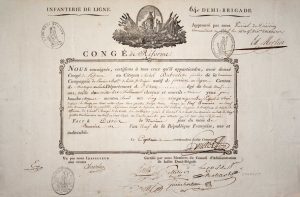 Pour le Citoyen Michel DUBOULET, Fusilier de la 2ème Cie du 1ier Bat. de la dite Brigade, natif de FERRIERE, canton de MORTAGNE AU PERCHE Département de l’ORNE (61) … lequel a servi depuis le 21 mai 1793 jusqu’au 9 Brumaire an 9, avec honneur, zèle et probité.