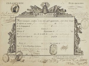 1page gravée (25 x 33), remplie à l’encre, illustrée de soldats -