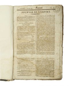 « JOURNAL DE L’EMPIRE. » Année 1809 – Recueil de 114 journaux intitulés « Journal de l’Empire » de 4 pages in-folio, de Janvier, Février, Mars et Avril 1809,