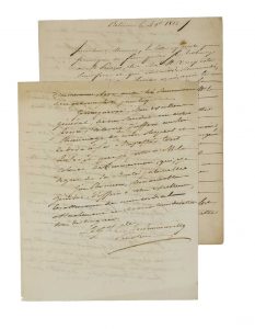 “Mon cher Ministre... je commence par vous faire mon compliment sur votre avènement au Ministère de la guerre de S.M. le ROI DE NAPLES; suivant moi, vous seriez mieux à la tête d’une armée... M. le Colonel de ZIMMERMAN, qui commande dans la Province d’OTRANDE, est le fils du respectable Général de ZIMMERMAN Ancien major général des Gardes Suisses... (Il demande d’intervenir pour lui procurer le grade de Général de Brigade)... Mr de SALICETTI m’a dit qu’il tenait une conduite parfaite. La guerre, qui, parait probable avec l’AUTRICHE, mettra sans doute Sa Majesté dans le cas de faire des promotions...” –
