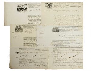 ÉTATS-UNIS – MARINE – 10 CONNAISSEMENTS de Navires partant des États-Unis, chargés pour M. FOACHE Négociant au HAVRE – Ils transportent, principalement, des balles de COTONS (de Louisiane) – Texte en anglais –