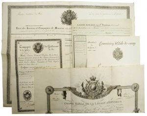PAS-DE-CALAIS – Dossier de 12 pièces concernant la Carrière de CHATILLON DE MONCÉ, GENDARME DE LA GARDE DU ROI, né à CALAIS – (Documents d’Octobre 1814 à 1830) :