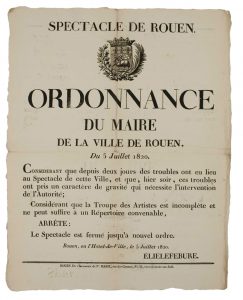 ROUEN (76) 1820. « SPECTACLE DE ROUEN. » (titre) - Ordonnance du Maire de la Ville de ROUEN, Élie LEFEBURE, du 5 Juillet 1820.