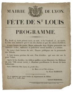 MAIRIE DE LYON. 1820. PROGRAMME DE LA FÊTE DE SAINT LOUIS, à LYON le 9 août 1820.
