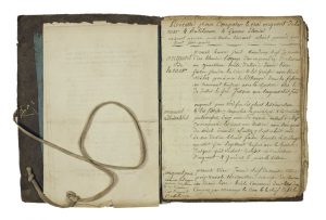 CARNET DE VÉTÉRINAIRE – (MEUSE) - Carnet avec couverture et ficelle de fermeture, de recettes et remèdes vétérinaires - entièrement manuscrit écrit vers 1823 ,