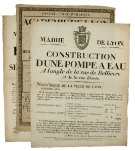 « MAIRIE DE LYON ». 1823 – 3 PLACARDS (53 x 42), imprimés à Lyon :