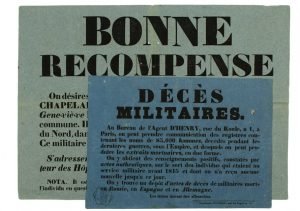 (RECHERCHE DES MILITAIRES DISPARUS DES GUERRES DE L’EMPIRE.) – 2 AFFICHES avec timbre Royal (époque Restauration) –