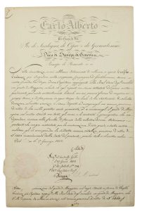 BREVET DE PENSION signé CARLO ALBERTO Roi de Sardaigne à son en-tête impr. (en italien) –