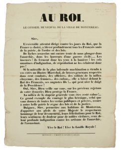 (ATTENTAT DE FIESCHI CONTRE LOUIS-PHILIPPE le 28 Juillet 1835) – « Au Roi, le Conseil municipal de la ville de MONTEREAU. » -