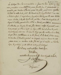 Lettre de recommandation en faveur de LEFEBVRE fils, soutien de famille, adressée à M. LECONTE Directeur général des Postes. –