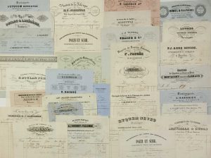 Nombreuses Factures de Commerçants de BORDEAUX (33), et notamment pour l’armement et la cargaison du Navire L’ABEL en partance pour le Sénégal. (Capitaine Roche) –