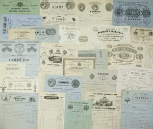 Veuve LEBRUN Fabricante de nécessaires garnis, coffrets de poche, boites à ouvrages pour dames, boites à gants, boite à thé, boites à cigares 209 rue st Martin 1863 + GERVAIS Constructeur de calorifères 1851 + « AU COQ D’OR » 46 rue st Anne, étoffes de soie et articles de fantaisies 1870 + DEFRIES & SONS 42 rue de Paradis-Poissonnières. Lustres de cristal et appareils d’éclairage 1872 + GILOT, E1picerie, comestibles 87 rue neuve des petits champs. Jambons d’York, Westphalie, Bayonne, Caviar de Russie, Saumon fumé… 1860 + BOISTEL Frères 31 rue des Bourdonnais. Nouveautés pour pantalons et paletots de Roubaix, Laval et Reims… 1864 + Maison FRAISNAIS & GRAMAGNAC 32 rue Feydeau ; Fabrique de dentelles, Bruxelles et Chantilly. Cachemires des Indes et Cachemires Français. 1854 + DOULCIER Ébéniste-tapissier 42 rue de Babylone, 1863 + « AU SAUVAGE » Fabrique de tissus et impressions •A. JODON 34 Bld des Italiens. 1855 +
