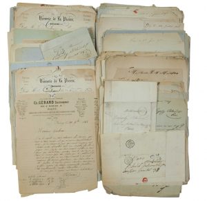 (PARIS. FABRICANTS DE JOUETS) - Important ensemble de 295 Factures et Lettres timbrées, de 1849 à 1872, adressées à Mr CUPERLY-BLONDEL Fabricants de Jouets d’enfants en étain, 32 rue GrenÉtat et 32 rue Charlot à Paris.