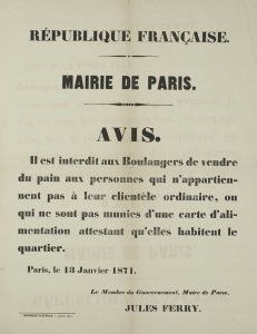 (SIÈGE DE PARIS.) « MAIRIE DE PARIS ». AVIS de Jules FERRY, Le Membre du gouvernement, le Maire de PARIS. Paris le 13 Janvier 1871 –