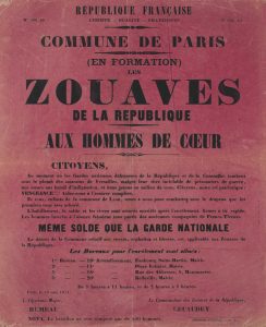 « COMMUNE DE PARIS. (en formation) LES ZOUAVES DE LA RÉPUBLIQUE. Aux hommes de cœur.» - PARIS 19 Mai 1871) –