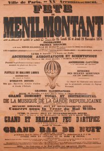 (BALLON. PARIS 1874) – « VILLE DE PARIS. XXe Arrondissement. FÊTE DE MÉNILMONTANT des Dimanche 8 au Jeudi 19 Novembre 1874. » –