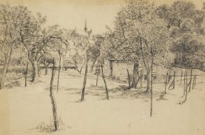 TRIEL SUR SEINE (YVELINES) – Jolie dessin début XXe S., de la Ville de Triel, vue de l’église –