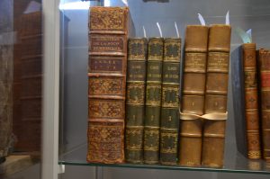 3 volumes in-8, basane verte, dos à nerfs ornés, plats estampés à froid, fer du lycée d’Avignon sur les plats. Dos passés et qques tâches sur les plats.
