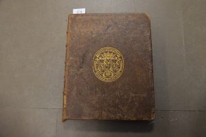 In-4 ; veau époque aux armes, dos à nerfs orné.