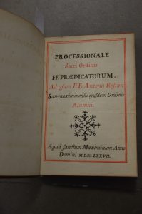 MANUSCRIT. MUSIQUE Processionale // Sacri Ordinis // FF. Praedicatorum. // Ad usum P.F. Antonii Rostan // San-maximinensis ejusdem Ordini // Alumni. // Apud sanctum Maximinum Anno Domini 1777.