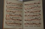 Manuscrit sur papier fort de 1f. nchf, 58 pp. et 13 ff. blancs nchf. Musique notée et texte noir et rouge.