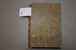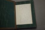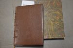 In-12 ; carré ; maroquin chataigne, dos à nerfs débordant sur les plats. Filet en encadrement sur les plats. Gardes et contregardes soie verte. Couvertures cons. Etui.
