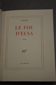 ARAGON. Le fou d'Elsa, poème, chez Gallimard, Nrf, 1963.