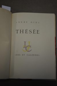 ANDRÉ GIDE. Thésée, avec un portrait de l'auteur par Dunoyer de Segonzac, Neuchatel et Paris, Ides et Calendes, chez Gallimard 1947.