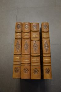 4 volumes petits in-4, reliure éditeur pleine basane, dos à nerfs, plats ornés de motifs à froid, exemplaire numéroté sur pur fil.