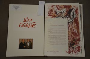 LÉO FERRÉ. Portefeuille contenant la suite complète des 50 lithographies originales de Jacques PECNARD qui illustrent les chansons de LÉO FERRÉ ,