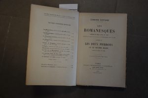 ROSTAND (Edmond). Les Romanesques comédie en trois actes en vers précédée de Les Deux Pierrots ou Le Souper Blanc, lever de rideau en vers, Paris, Charpentier et Fasquelle, 1923,