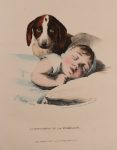 ALBUM ROMANTIQUE - Recueil de 35 lithographies et gravures certaInes contre collées – par divers : BONInGTON, DESCARIA, DEVERIA, FRAGONARD, GARNIER, GUDIn, BOILLY L'Innocence et la fidélité (coloriée), ... -