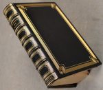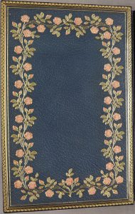 maroquIn bleu nuit, un jeu de filets dorés autour des plats, dos à nerfs orné de filets dorés, date en queue, filets sur les coupes, doublure de maroquIn bleu ornée d'une guirlande mosaïquée en encadrement, tr. dorées sur témoIns, sous emboîtage (Mercier succr de CuzIn)