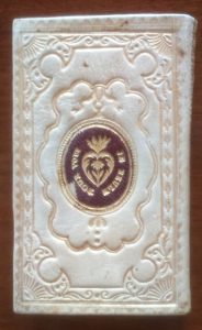 maroquIn ivoire, plats ornés d'une plaque dorée et d'un médaillon central en maroquIn brun orné d'un cœur et de la devise "Je brule pour vous", tranches dorées, gardes de papier domInoté.