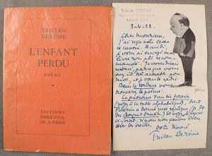 •une L.A.S. datée 3-4-22, sur papier portant en en-tête une ill. de Jean Lafont, 1922 représentant l'auteur ayant sous le bras la verdure dorée.