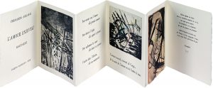 ARRABAL (Fernando). L’Amour enseveli. Nice, Jacques Matarasso, octobre 1985. Plaquette in-16 (133 x 128 mm) de [10] ff. dont six montés en accordéon, les deux premiers, les deux derniers ainsi que les versos blancs, couverture à rabats, étui à...